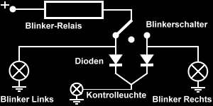 Der deutsch TÜV verlangt nach einer Blinkerkontrolleuchte. Das ist nicht weiter schwer zu realisieren und mit wenig Kabelwerk mit Hilfe von zwei Dioden zu bewerkstelligen. Hier mal eine kleine Grafik zur Verkabelung :