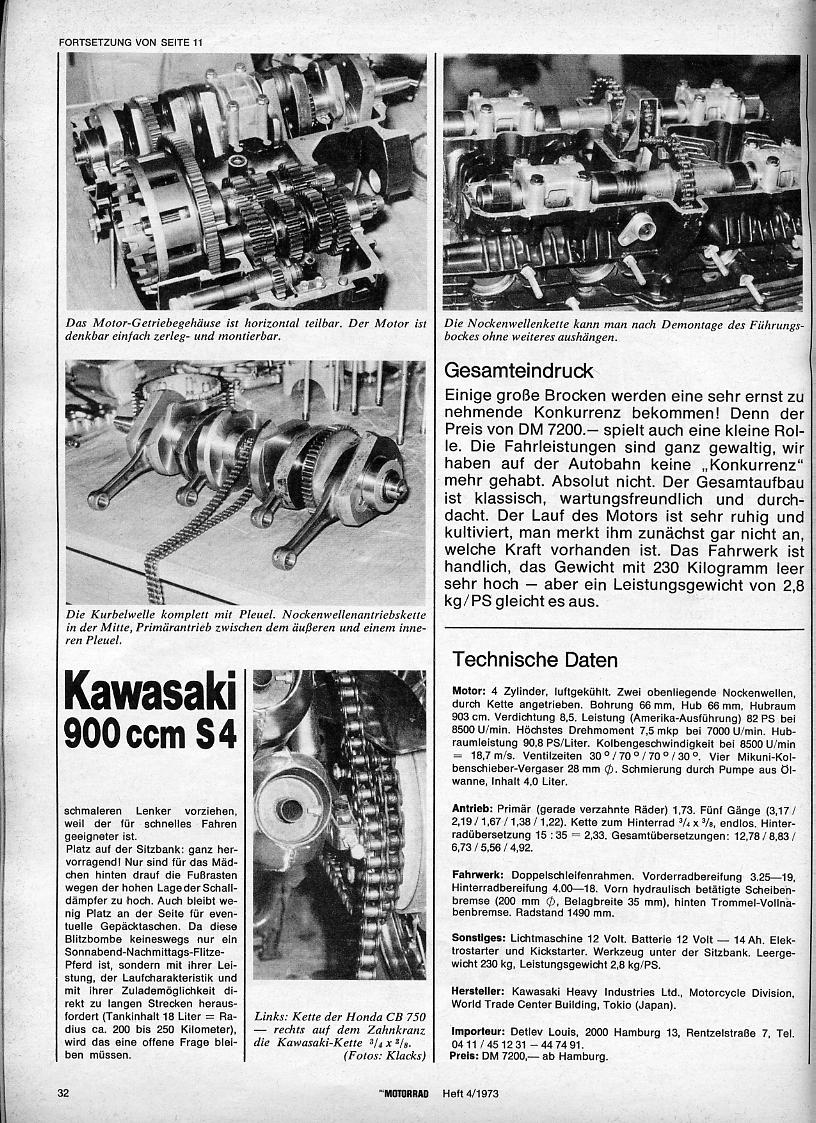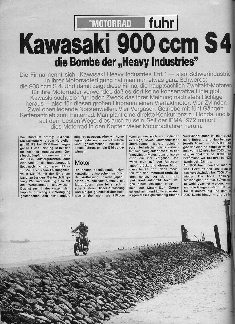 Das Motorrad 24. Februar '73 : Kawasaki 900 ccm S4