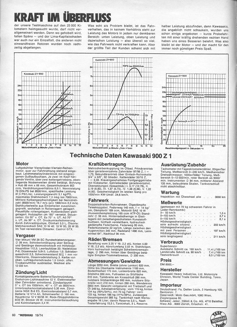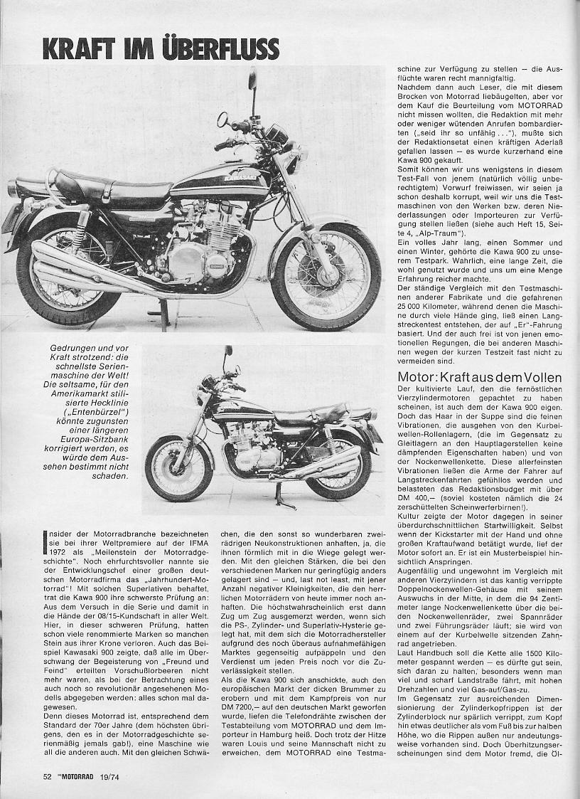 Das Motorrad 21. September '74 : Langstreckentest Kawasaki 900