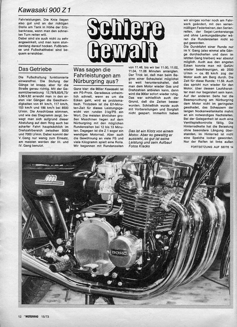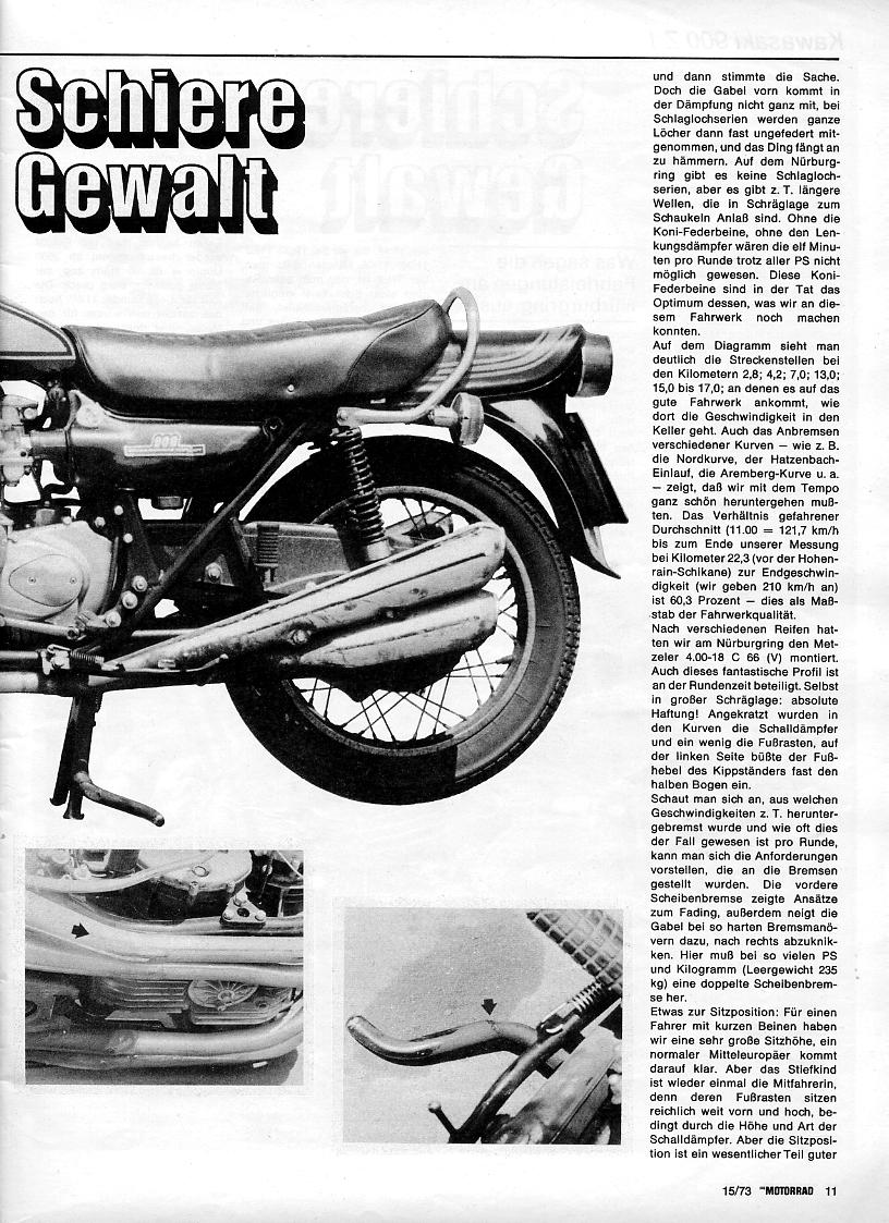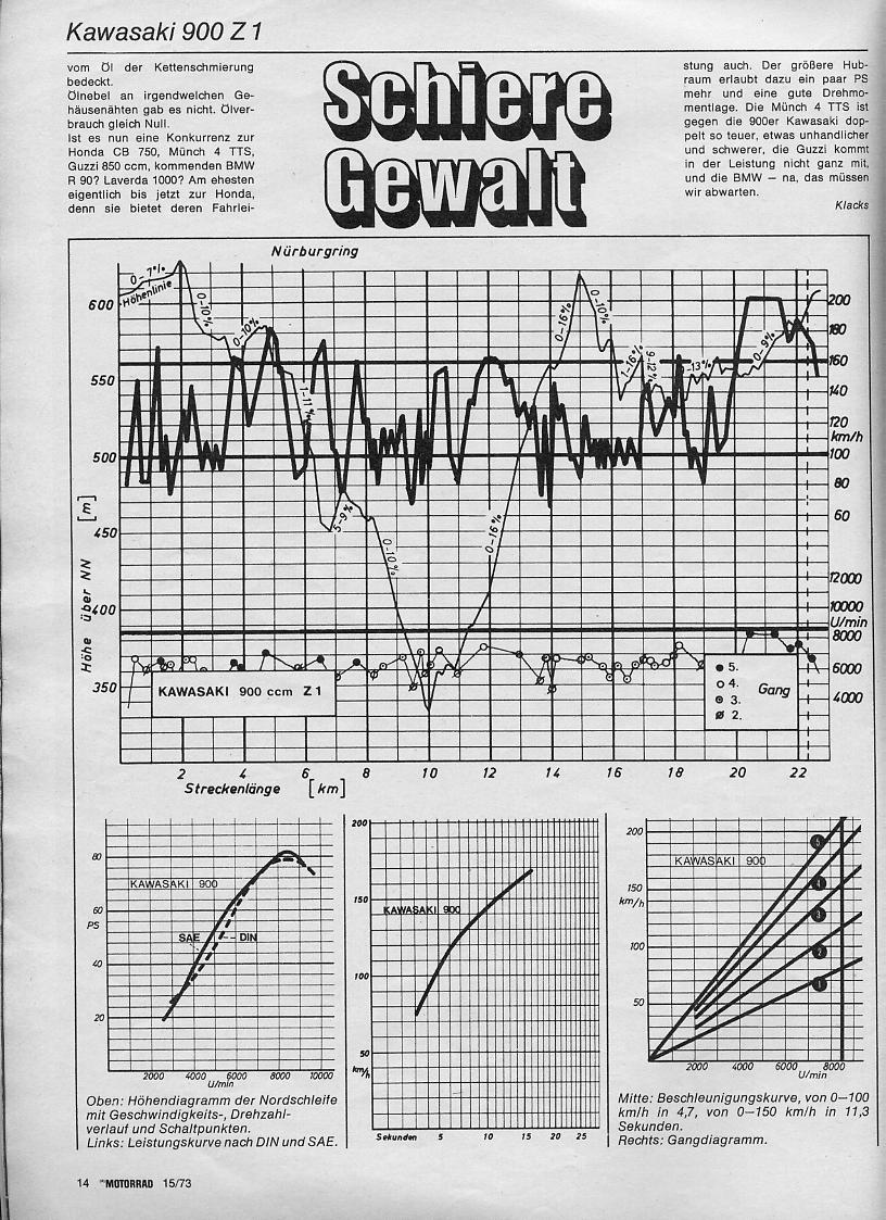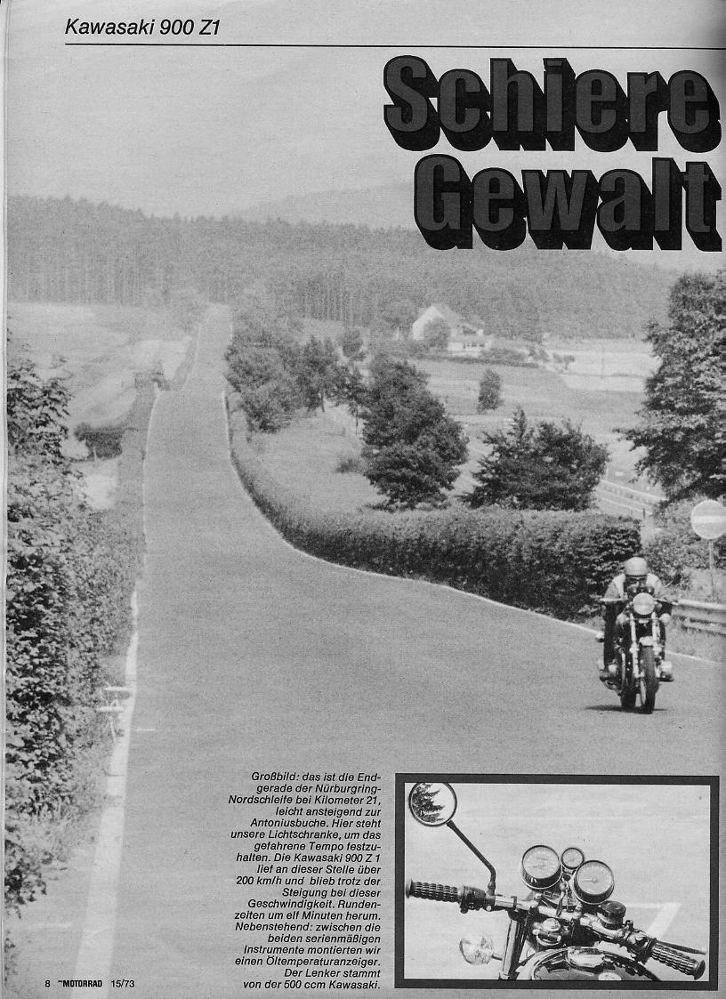 Das Motorrad 28. Juli '73 : Nürburgringtest Kawasaki 900 - Schiere Gewalt